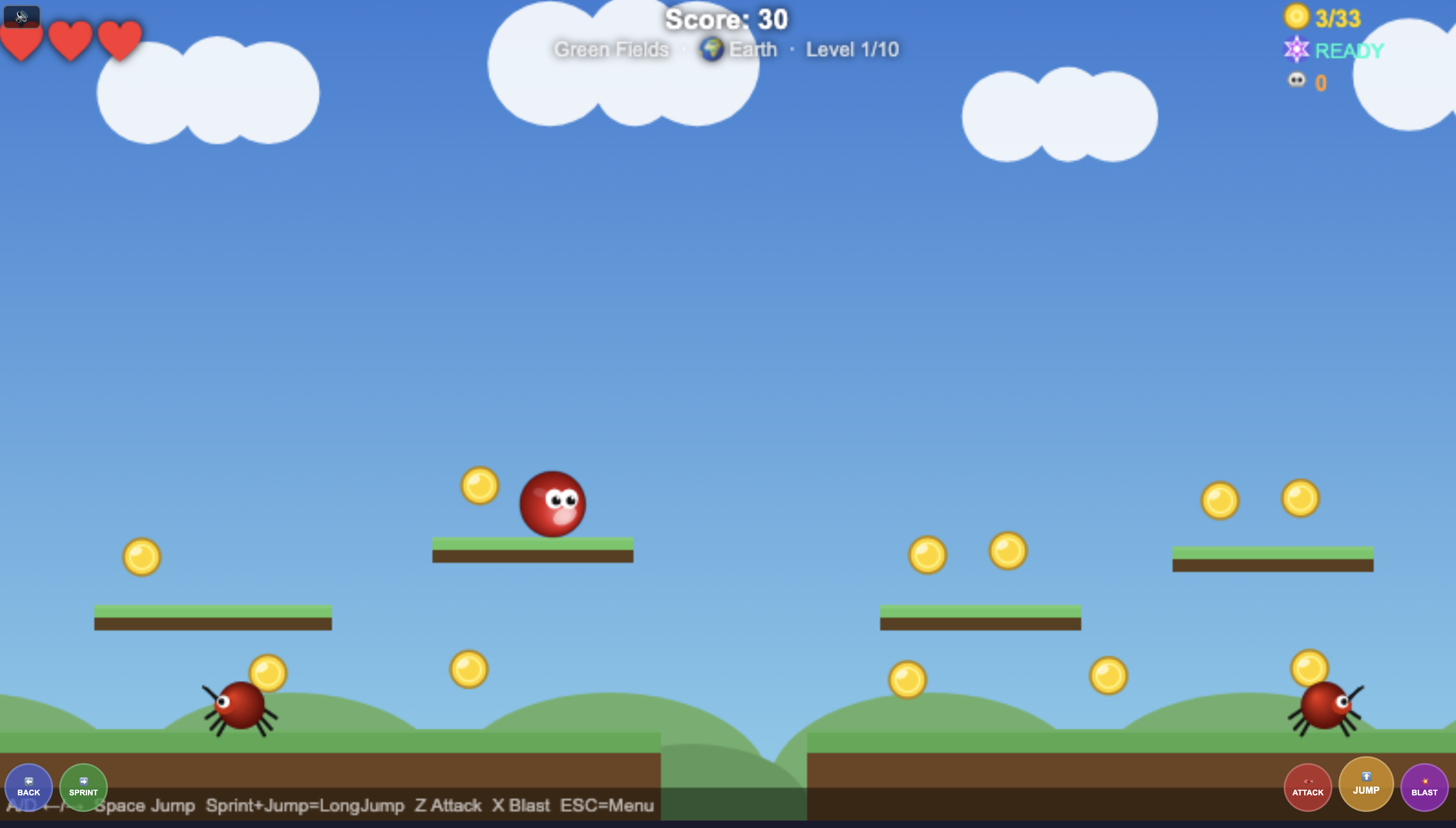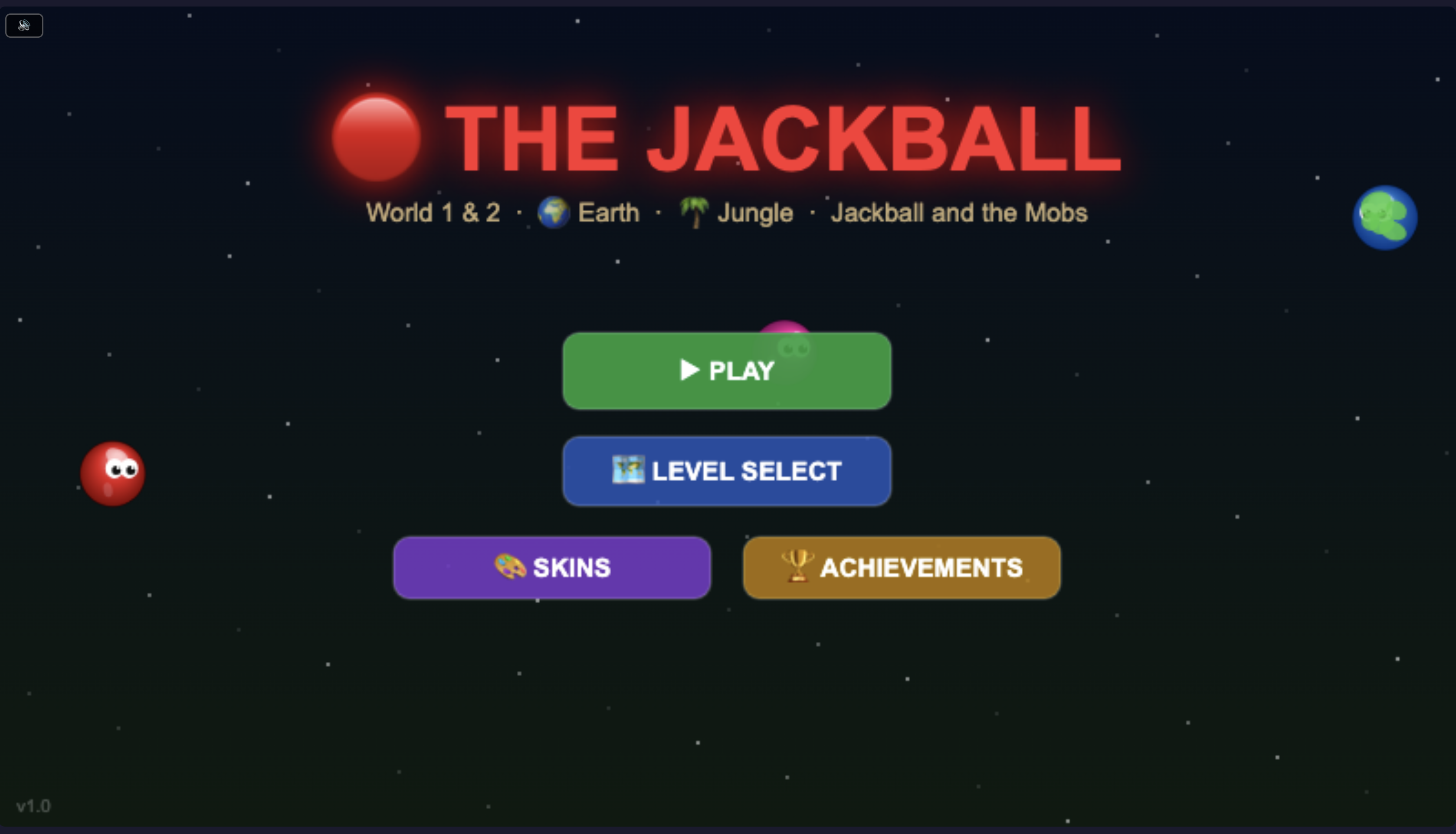 Jump, stomp and blast your way through 10 Earth World levels with The Jackball! Defeat Angry Ants, Stone Golems and the fearsome Rock Titan boss. Unlock 11 unique skins and collect coins across 5 worlds.